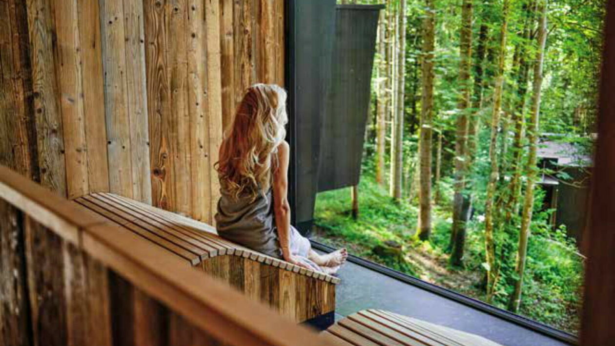 Im direkt angrenzenden Mischwald eingebettet, verteilt sich das WaldSPA über mehrere Lodges am Waldrand, die aus hochwertigem Kebony-Holz gefertigt sind. Finnische Sauna, Kräuter-Bio-Soft-Sauna und großzügige Ruheräume mit Glasfronten öffnen den Blick ins Grüne, Anwendungen mit heimischen Wirkstoffen lassen die Natur auf der Haut spürbar werden. Der ganzjährig beheizte Outdoor-Infinitypool geht sanft in den Wald über, Yogaplattformen inmitten von Fichten, Tannen, Buchen und Eschen schaffen Raum für bewusste Bewegung und Achtsamkeit. Naturkino inklusive.